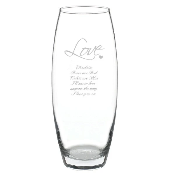 Personalise this elegant Love Bullet Vase with up to 6 lines of 20 characters each.