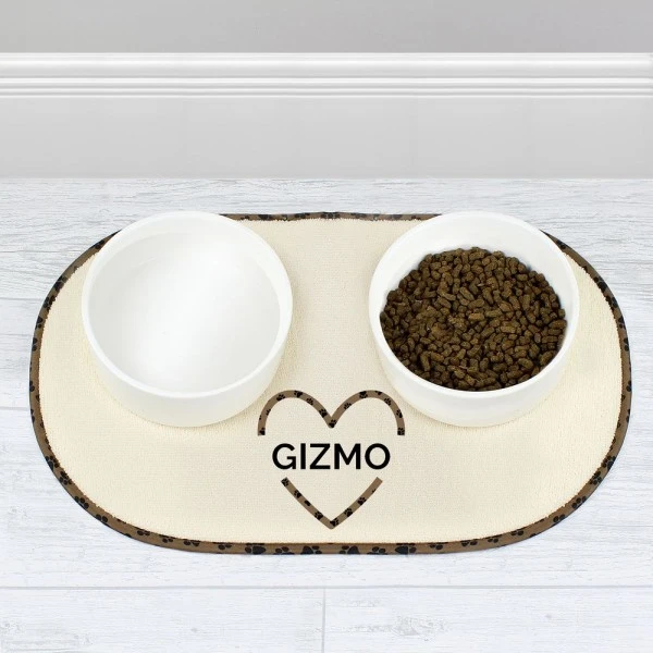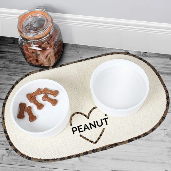 Our Personalised Love Heart Pet Bowl Placemat is perfect for catching water and food from your adorable messy eater!