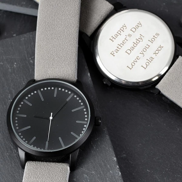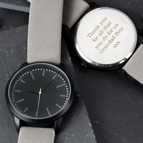 This Stunning Personalised Men’s Black Watch with Grey Strap is the perfect gift to show that special man how much you care.