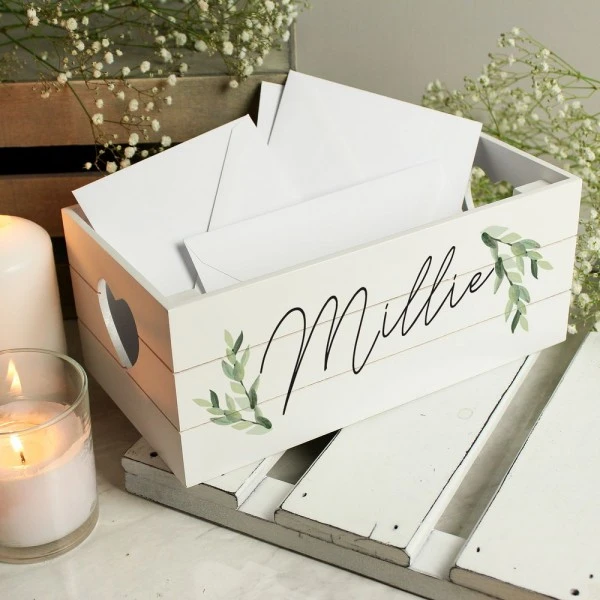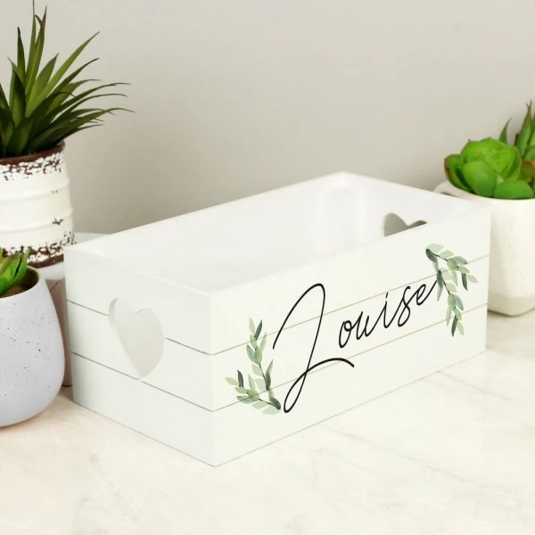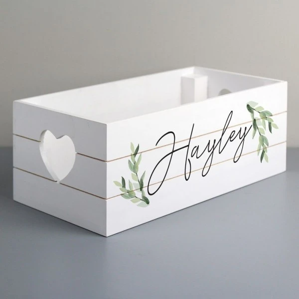 This personalised white wooden crate is a great way to add a personal touch to any home!