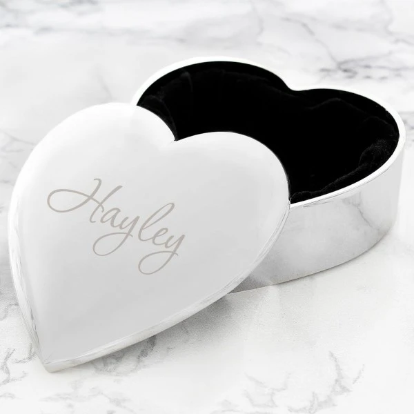 Personalise this charming silver heart trinket box with a name up to 12 characters.