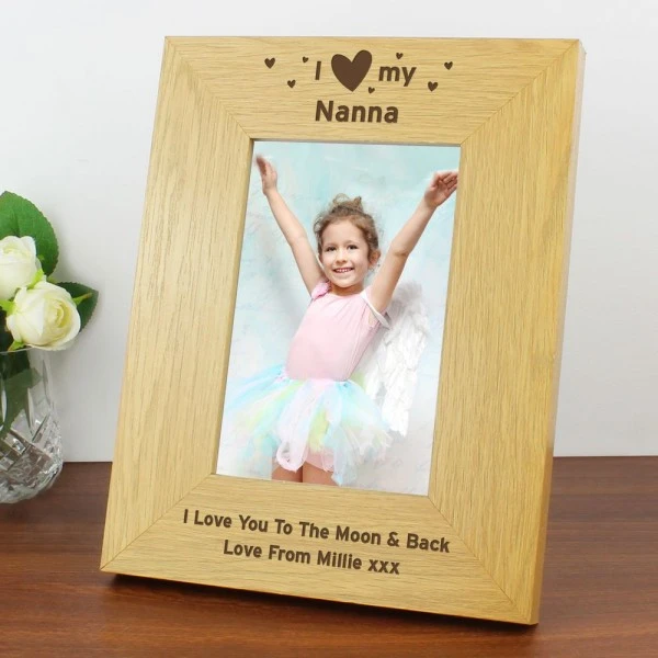 Personalise this I Heart My.. 4×6 Wooden Frame with a name at the top (i.e. Mummy) up to 12 characters and 2 lines below the photo, 30 characters per line.
