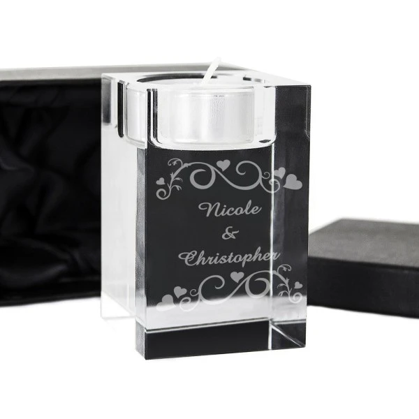 Personalise this Ornate Swirl Tea Light Holder with 3 lines of 15 characters.