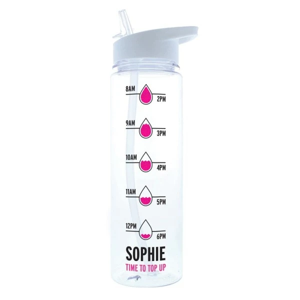 This pink personalised water bottle is sure to keep you motivated to keep drinking water throughout the day!