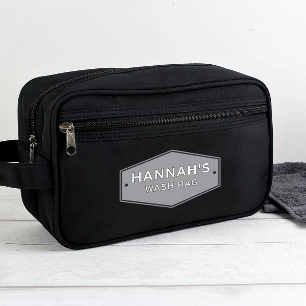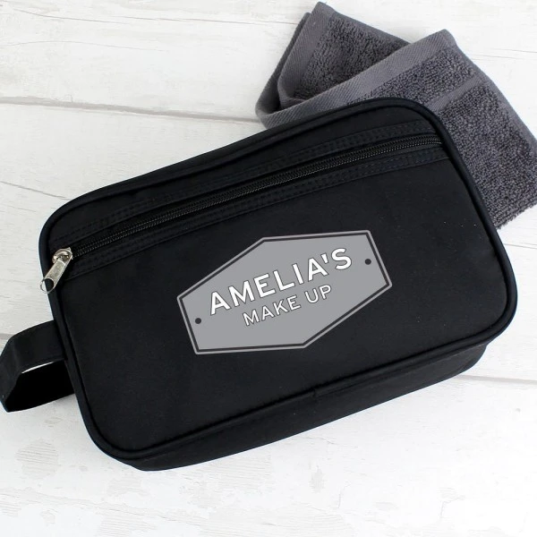 This Personalised Plaque Black Wash Bag is perfect for storing a variety of skin and haircare products!