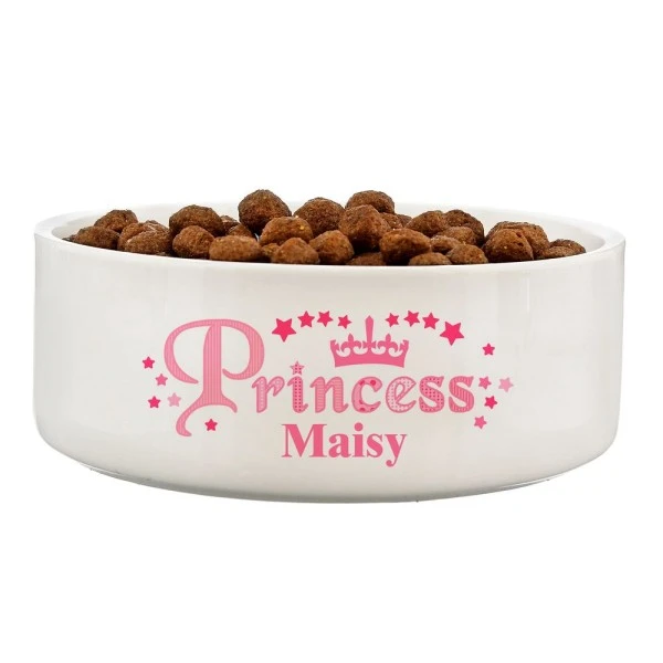 Our Princess 14cm Medium White Pet Bowl can be personalised with a name up to 12 characters in length.