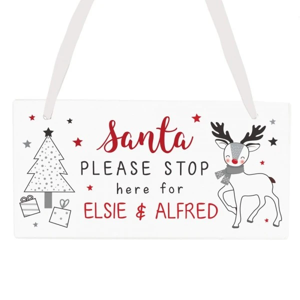This Personalised Rudolph Santa Stop Here Wooden Sign will look great on a bedroom door, or proudly displayed around the home.