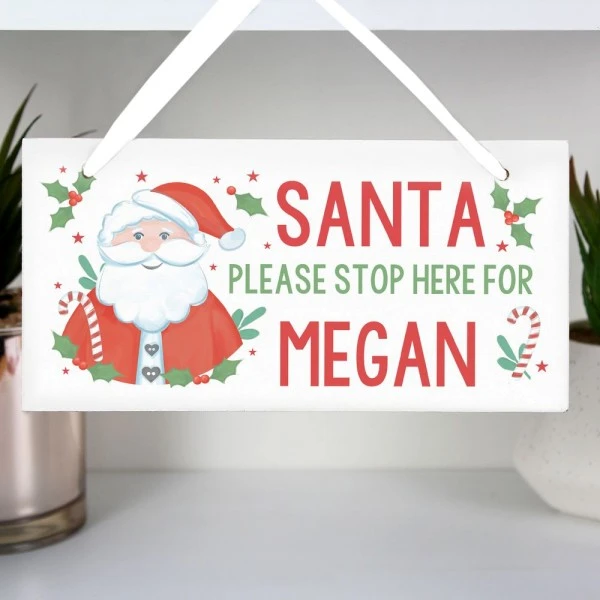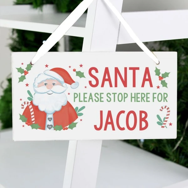 This cute Personalised Santa Stop Here Wooden Sign will look great on a bedroom door, or proudly displayed around the home.