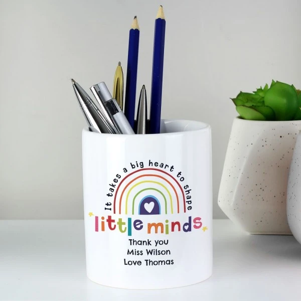 This Personalised Shape Little Minds Ceramic Storage Pot makes a great gift for teachers!