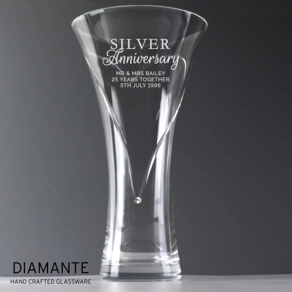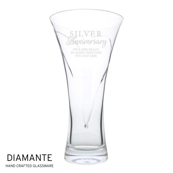 Personalise this Hand Cut large Silver Diamante Vase with a message up to 3 lines of 20 characters.
