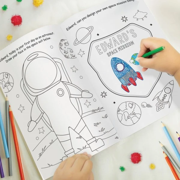 A fantastic gift for any child with an active imagination, this personalised space themed colouring book features the child’s name on the front cover and throughout the colouring book.