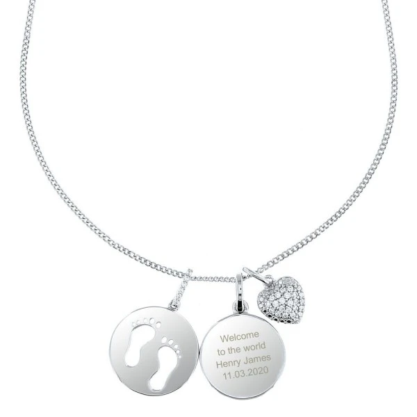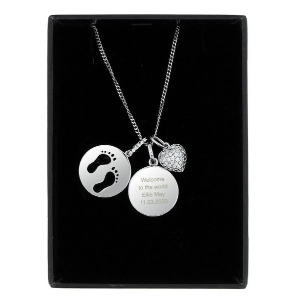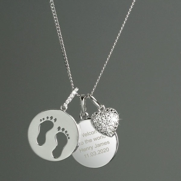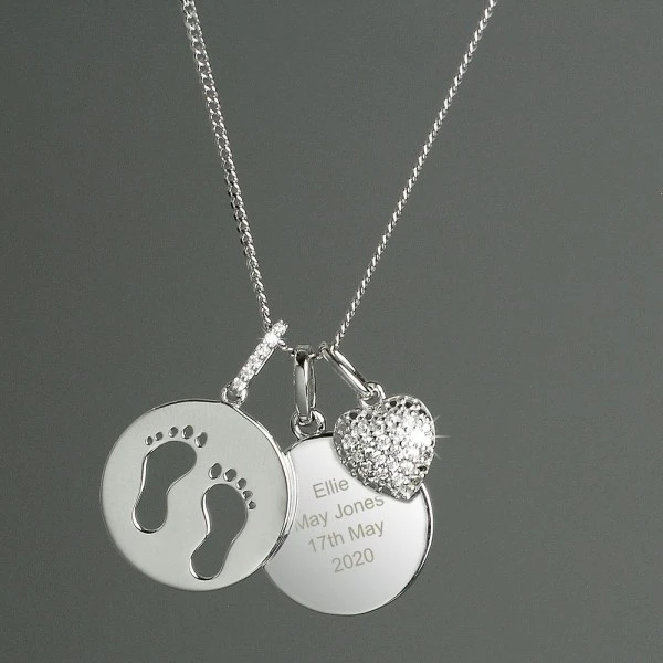 This Personalised Footprints Sterling Silver & Cubic Zirconia Necklace is an ideal gift for Mother’s Day!