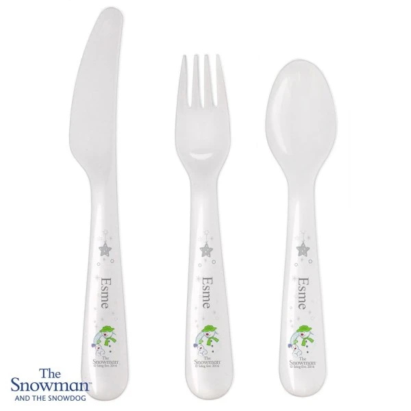 This practical 3 piece set of plastic cutlery featuring the licensed The Snowman and the Snowdog design can be personalised with any name up to 12 characters in length. All personalisation is case sensitive and will appear as entered.