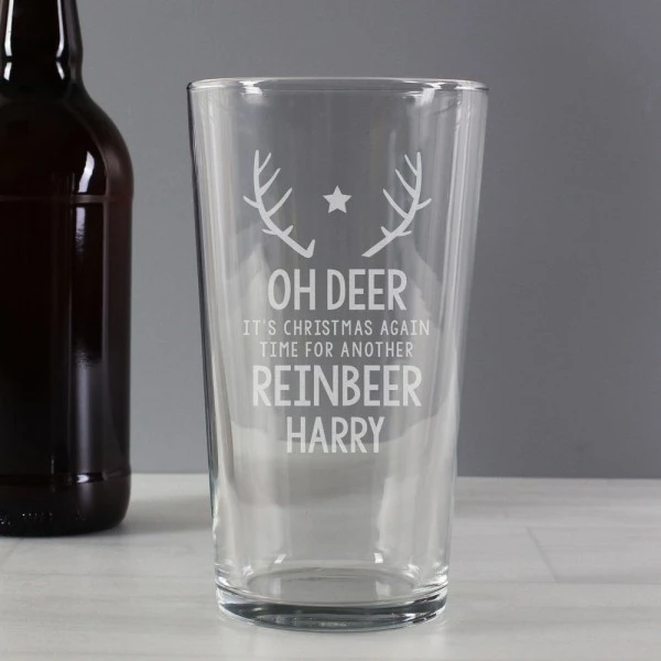 Celebrate Christmas in style with this Personalised Reinbeer Pint Glass.