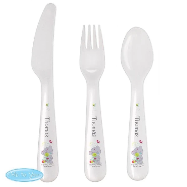 This practical 3 piece set of plastic cutlery featuring the Tiny Tatty Teddy Cuddle Bug design can be personalised with any name up to 12 characters in length. All personalisation is case sensitive and will appear as entered.