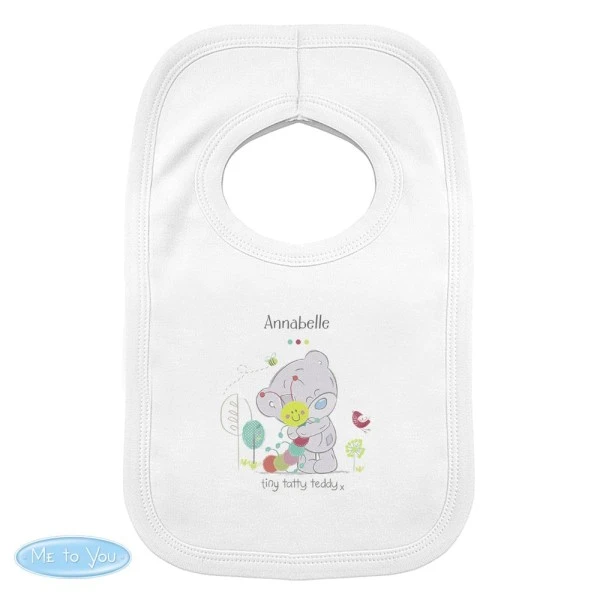 This 100% cotton baby bib is sized 0-3 months.