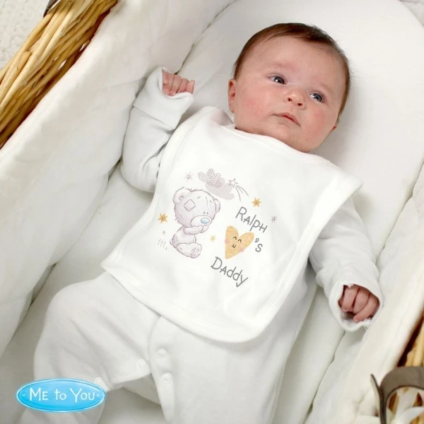 Personalise this Me To You Tiny Tatty Teddy I Heart Baby Bib with two names up to 12 characters in length.
