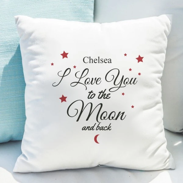 Their name is included within the design on the front of this loving cushion cover, showing them you love them to the moon and back.