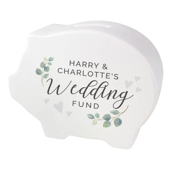This personalised piggy bank is perfect for saving those pennies for your wedding.