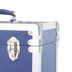 Personalised 12 Inch Record Storage Box – Light Blue Leather Effect With Metal Trim – Record Sticker