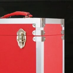 Personalised 12 Inch Record Storage Box – Red Leather Effect With Metal Trim – Half Record Sticker