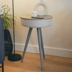Tabblue Personalised Bluetooth Side Table With Surround Sound – Light Wood – Whiskey Sticker