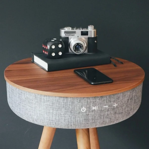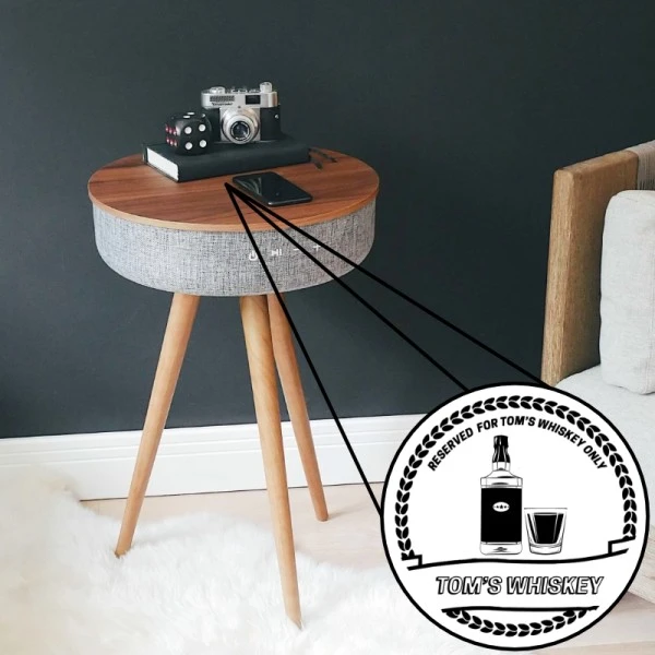 Tabblue Personalised Bluetooth Side Table With Surround Sound – Dark Wood – Whiskey Sticker